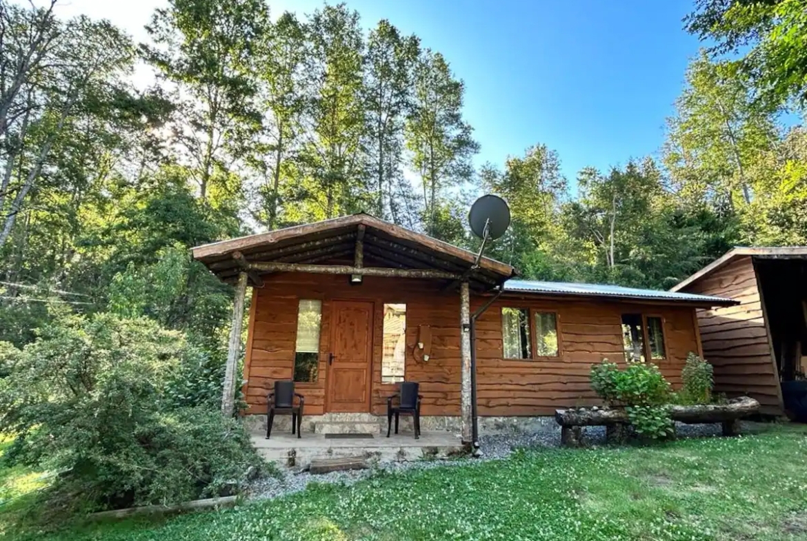 El complejo se emplaza en un terreno de 6.166 m² rodeado de bosque nativo, con acceso para todo tipo de vehículo y estacionamiento para huéspedes. La propiedad se vende con el negocio en funcionamiento, presentando muy buenos resultados de arriendo turístico.